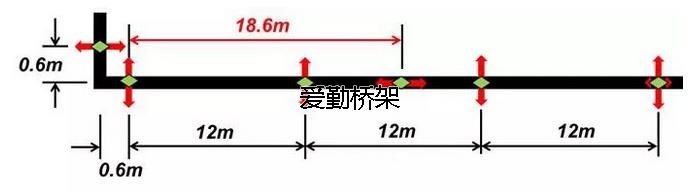 8.3.6 水平管道应在离转弯处0.6m范围内设置侧向抗震支吊架;若斜撑直接作用于管道,其可作为另一侧管道的纵向抗震支吊架;距下一纵向抗震支吊架间距应按下式计算: